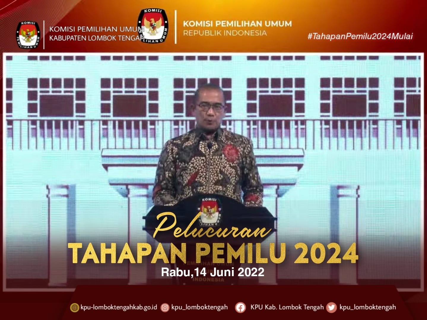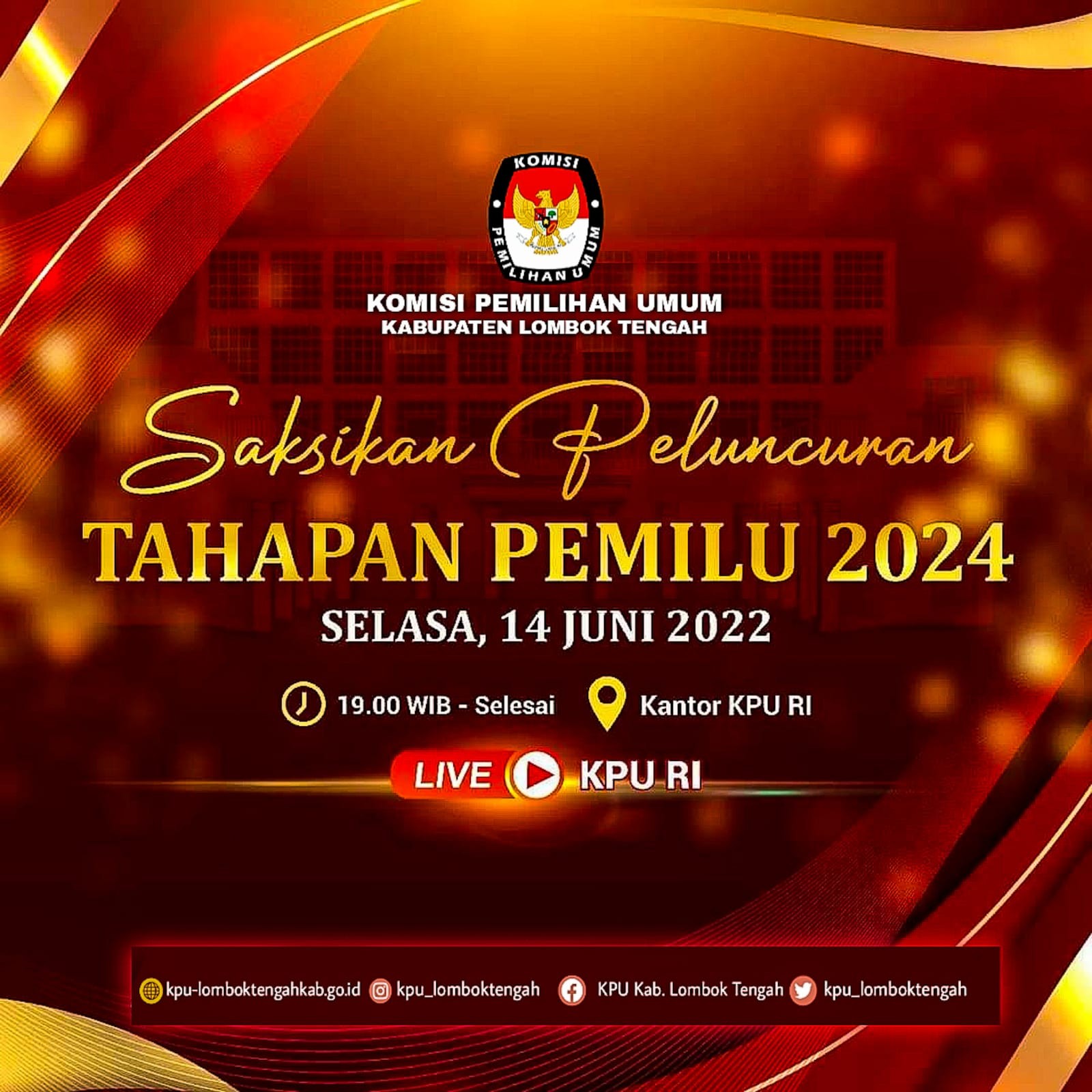 #TemanPemilih Selasa, 14 Juni 2022 KPU Kabupaten Lombok Tengah menyelenggarakan kegiatan nonton bersama Launching Tahapan Pemilu 2024 yang diselenggarakan di Gedung KPU RI Jakarta. Kegiatan nonton bersama ini dilaksanakan di kantor KPU Kabupaten Lombok Tengah dengan dihadiri oleh Ketua dan Anggota KPU Kabupaten Lombok Tengah, Bawaslu Kabupaten Lombok Tengah, Kesbangpoldagri, Partai politik se-Kabupaten Lombok Tengah, perwakilan wartawan dari media cetak dan online yang ada di Kabupaten Lombok Tengah, serta Dinas Instansi terkait. Acara dimulai pada pukul 19.45 Wita sampai dengan selesai, dengan terlebih dahulu dibuka oleh Ketua KPU Kabupaten Lombok Tengah dan selanjutnya secara bersama-sama menyaksikan Live Streaming “Launching Tahapan Pemilu 2024” melalui Zoom Meeting Kegiatan nonton bersama ini dilaksanakan pula oleh seluruh KPU Provinsi dan KPU Kab/kota se-Indonesia melalui Zoom Meeting dan kanal YouTube KPU RI. Sesuai dengan UU No. 7 Tahun 2017 Tentang Pemilihan Umum, pasal 167 ayat 6 menyebutkan bahwa Tahapan Penyelenggaraan Pemilihan Umum dimulai paling lambat 20 (dua puluh) bulan sebelum hari pemungutan suara, yaitu pada hari ini, Selasa 14 Juni 2022. Kegiatan ini merupakan momentum awal tahapan pemilu 2024, dan diharapkan seluruh komponen KPU Kabupaten Lombok Tengah dan stakeholder agar dapat bersama-sama mensukseskan pemilu tahun 2024. #TahapanPemilu2024Mulai