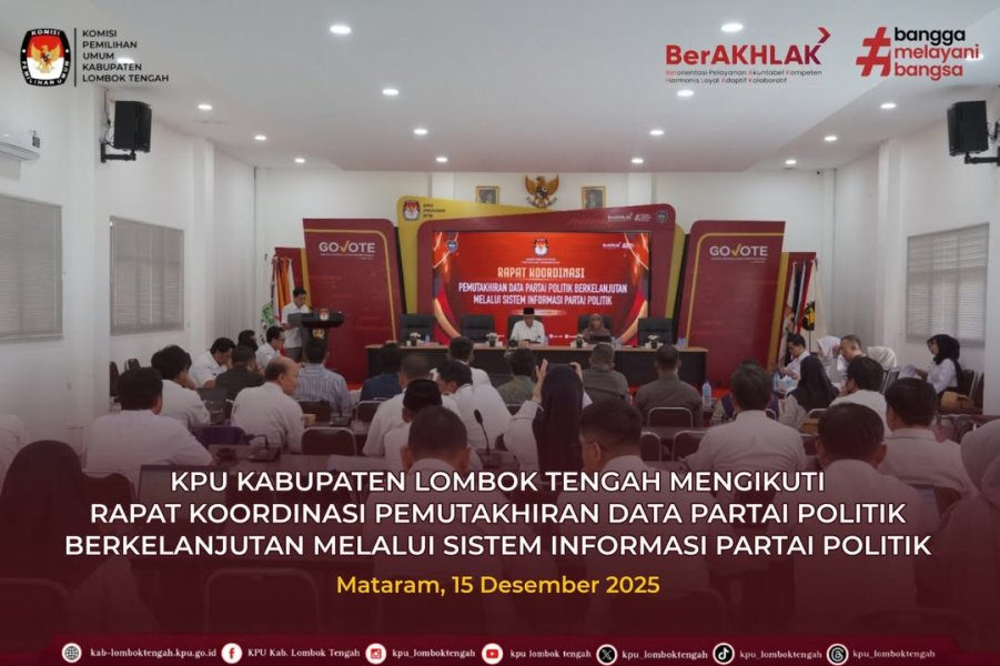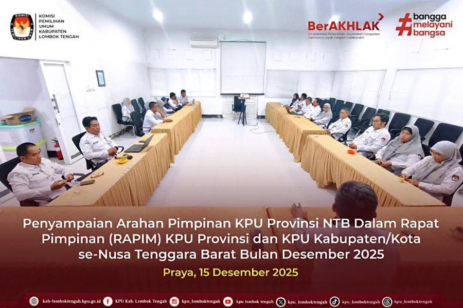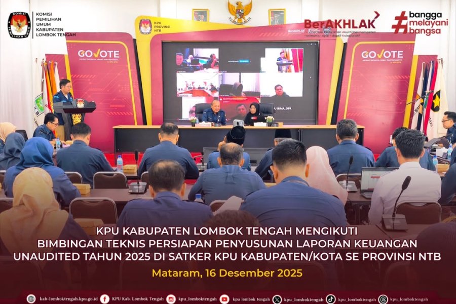 Selasa (16/12/2025) KPU Kabupaten Lombok Tengah mengikuti Kegiatan Bimtek Penyusunan dan penyampaian Laporan Keuangan Unaudited Tahun 2025 yang di selenggarakan oleh KPU Provinsi Nusa Tenggara Barat.