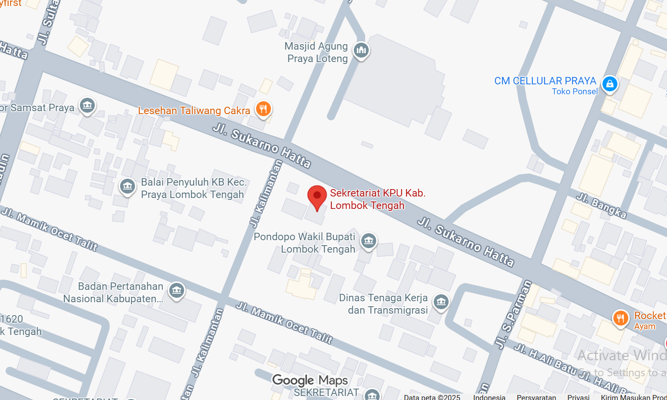 - Alamat : Jalan Soekarno-Hatta Praya Kode Pos 83511
